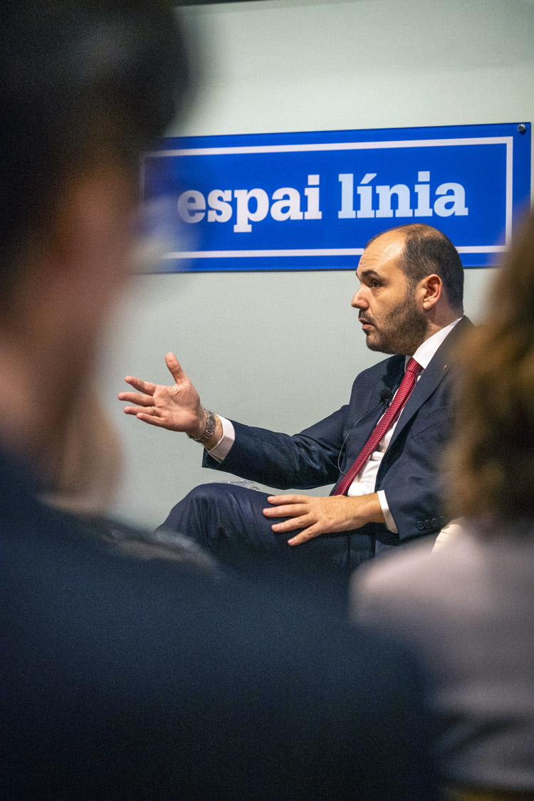 El conseller Albert Dalmau, durant la xerrada a l’Espai Línia. Foto: Joanna Chichelnitzky.
