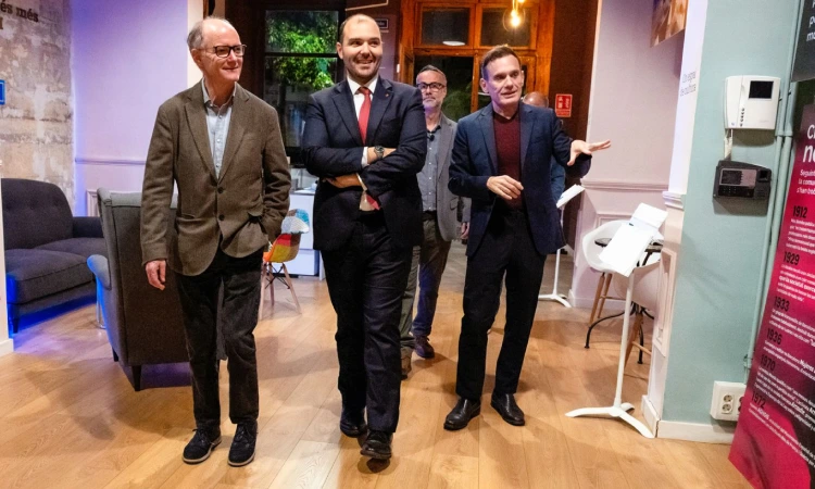 Un moment de la visita del conseller a Espai Línia. Foto: Joanna Chichelnitzky