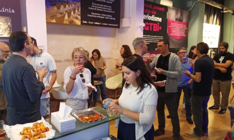 Un moment del càtering de proximitat compartit per llibreters i editors. Foto: Espai Línia
