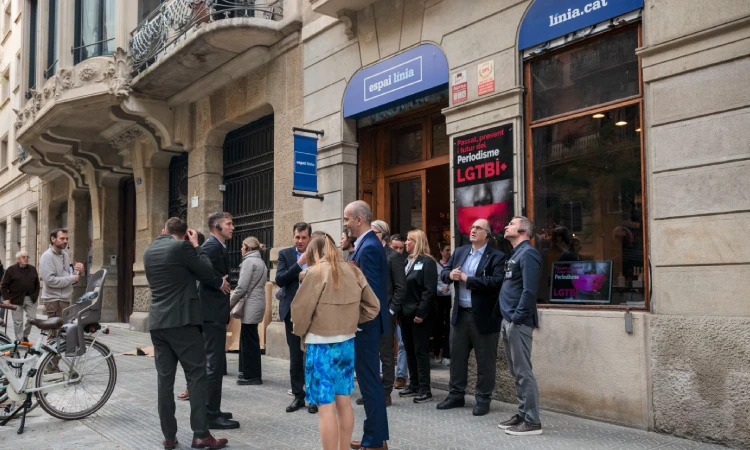 Els representants del comerç europeu, a davant de l’Espai Línia. Foto: Joanna Chichelnitzky