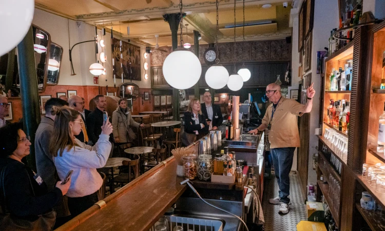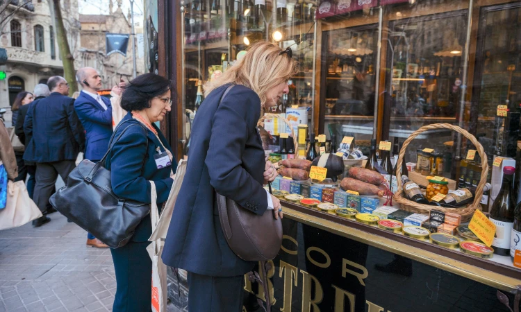 S’acaba, amb una copa de cava cortesia de l’Espai Línia, una ruta d’una hora que ha permès que els representants del comerç europeu s’emportin cap a casa una imatge fidedigna del comerç local que dona identitat a la Dreta de l’Eixample.
