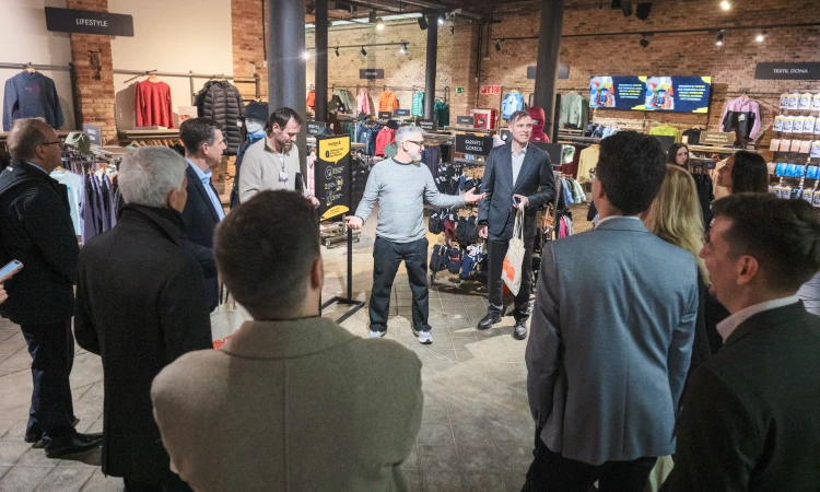 Finalment, el recorregut acaba al mateix carrer de Roger de Llúria, uns metres més avall, a la botiga de roba i material de muntanya i d’esquí Barrabes. La rebuda la fa en Juan Carlos, el director de la botiga, que explica que la marca va obrir per primer cop a Barcelona l’any 2012 i es van instal·lar al número 77 d’aquest carrer de la Dreta de l’Eixample, en un edifici “típic dels inicis del segle XX”. El grup passeja entre vambes i botes d’esquí mentre conversa sobre els comerços que han visitat. “És un barri que està canviant i el canvi és bo. Hi ha botigues que es conserven iguals i d’altres es modernitzen”, comenta Elsa Groen, la directora d’Independent Retail of Europe.