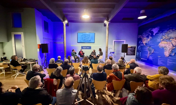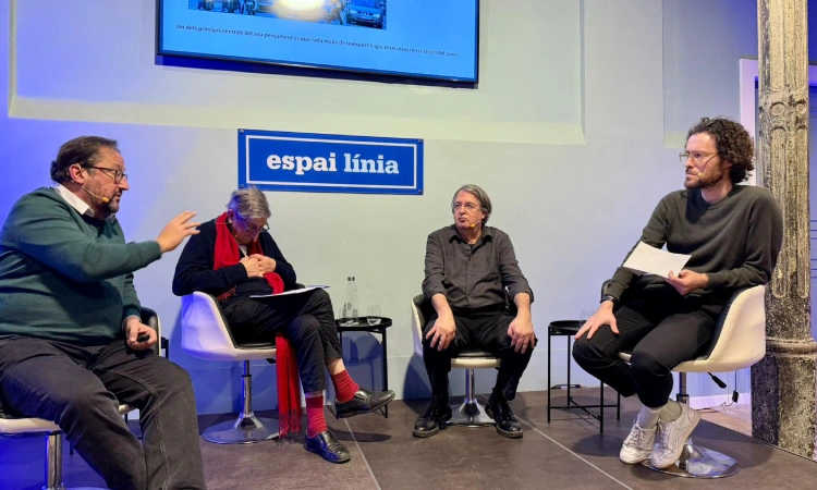 Francesc Magrinyà, Rafael de Cáceres, Jaume Artigues i el moderador del debat, Albert Ribas. Foto: Línia