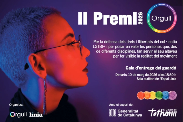 El segon Premi Orgull es lliurarà el 10 de març a les 18.30 hores a l’Espai Línia. El guardó s’entregarà a una persona LGTBI+ catalana que destaqui per la defensa dels drets i llibertats del col·lectiu i compta amb el suport i col·laboració de la Generalitat de Catalunya. L’objectiu és posar en valor les persones que, des de diferents disciplines, fan servir el seu altaveu per fer visible la realitat LGTBI+.